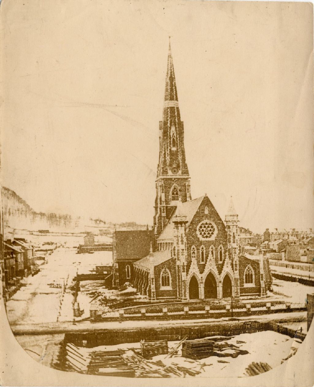 Montréal - Avenue Union angle rue Sainte-Catherine Ouest - Christ Church Cathedral, [Vers 1920], Archives nationales à Québec, Collection initiale, (03Q,P600,S6,D4,P86), Photographe non identifié.