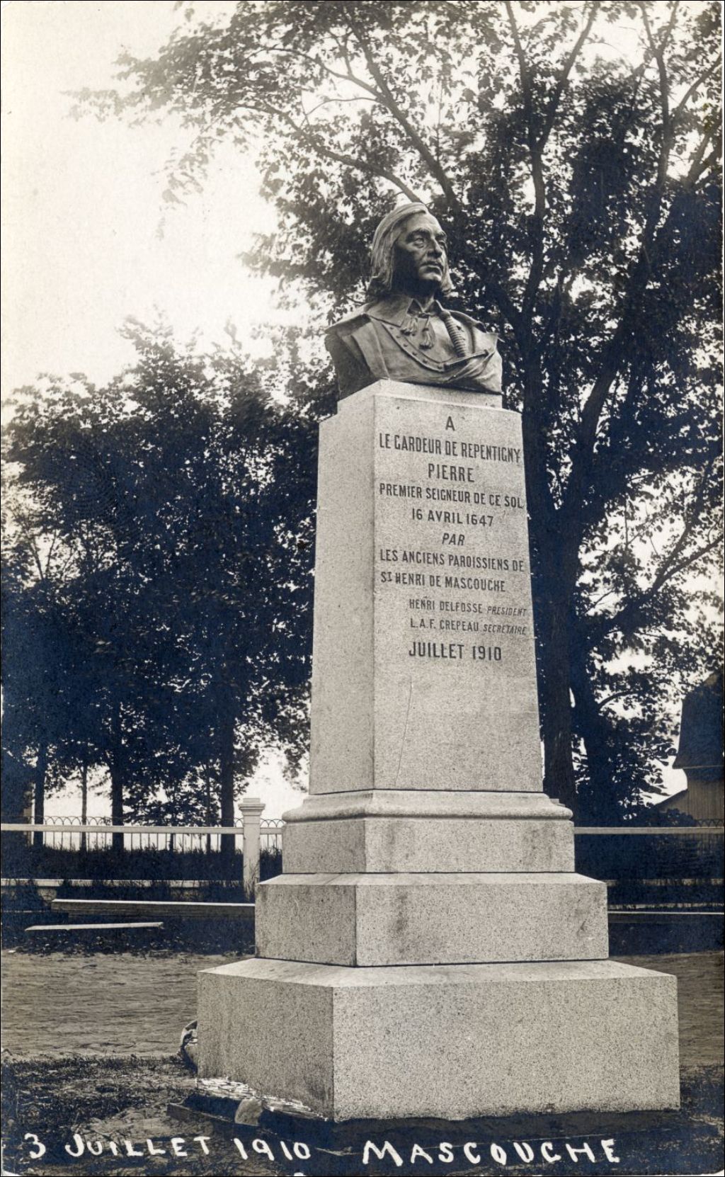 Mascouche - Monument Pierre Le Gardeur de Repentigny à Saint-Henri-de-Mascouche, juillet 1910, Archives nationales à Québec, Collection initiale, (03Q,P600,S6,D5,P404), Photographe non identifié.