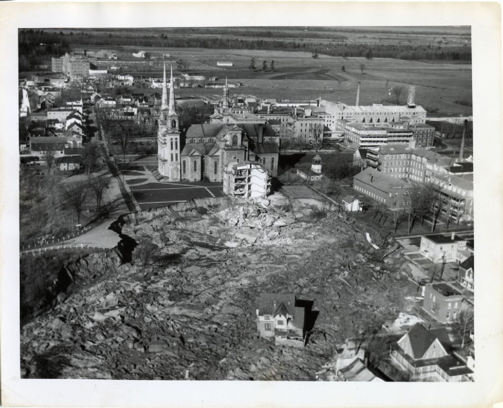 Nicolet - Évêché - Éboulis, novembre 1955, Archives nationales à Québec, Collection initiale, (03Q,P600,S6,D5,P483), Studio Roger Bédard Photographie Artistique et Commerciale.