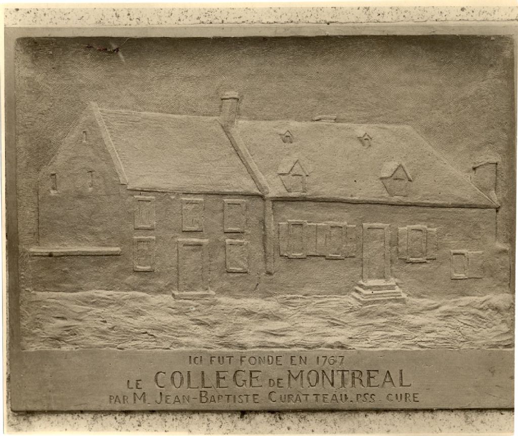 Longue-Pointe - Plaque commémorative de Jean-Baptiste Curatteau, fondateur du collège de Montréal (1767), (Vers 1925], Archives nationales à Québec, Collection initiale, (03Q,P600,S6,D5,P576), Edgar Gariépy, Photographe.