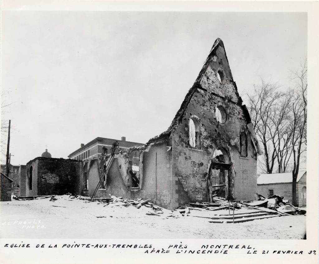 Pointe-aux-Trembles - Église - Incendie, février 1937, Archives nationales à Québec, Collection initiale, (03Q,P600,S6,D5,P971), J. Georges Proulx Photographe.