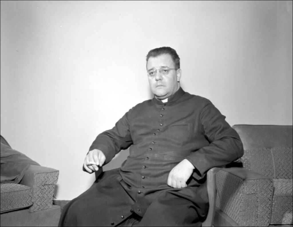Abbé Louis Campeau, aumônier à l'Hôpital du Sacré-Coeur de Hull, 13 février 1958, Archives nationales à Gatineau, Fonds Champlain Marcil, (07H,P174,S1,D13561), Attribuée à Champlain Marcil.