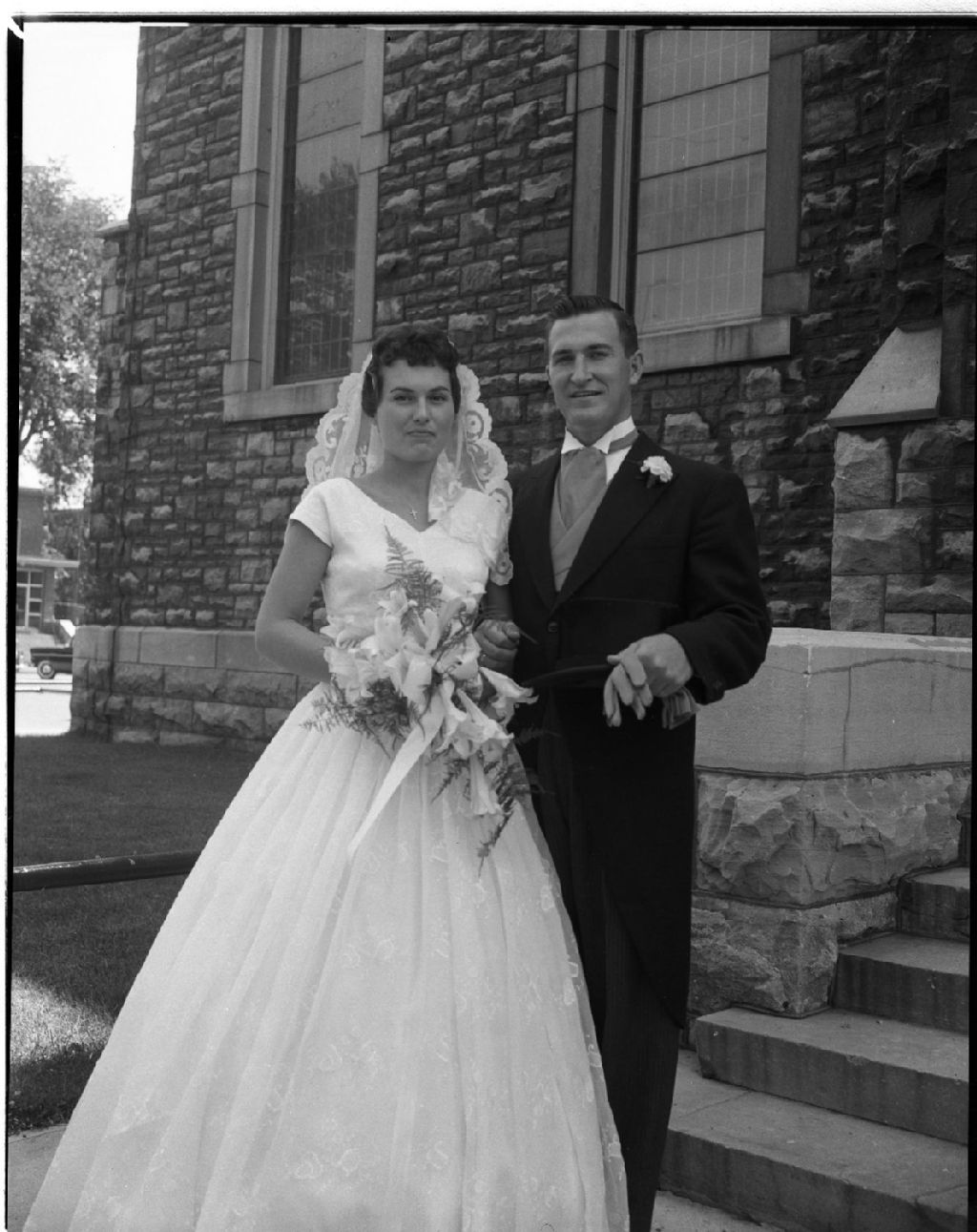 Mariage d'Émile Cloutier et de Madeleine Moritz à l'église Saint-Joseph d'Ottawa, 4 juillet 1959, Archives nationales à Gatineau, Fonds Champlain Marcil, (07H,P174,S1,D17550), Attribuée à Champlain Marcil.