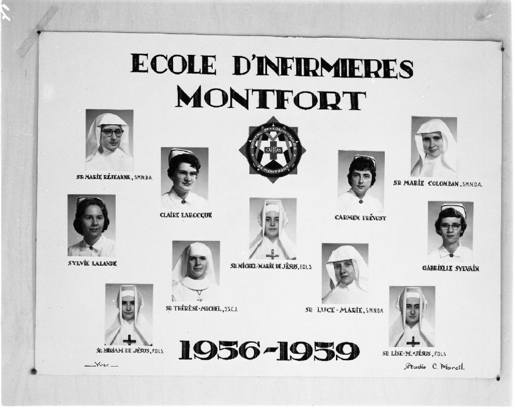Finissantes de l'Hôpital Montfort, 2 septembre 1959, Archives nationales à Gatineau, Fonds Champlain Marcil, (07H,P174,S1,D17873), Attribuée à Champlain Marcil.