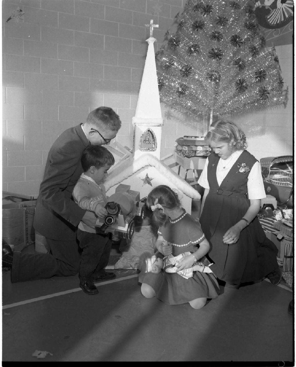Fête de Noël pour enfants, 20 décembre 1962, Archives nationales à Gatineau, Fonds Champlain Marcil, (07H,P174,S1,D29083), Attribuée à Champlain Marcil.