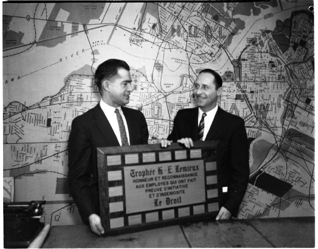 Hommage aux employés du journal Le Droit, 9 janvier 1963, Archives nationales à Gatineau, Fonds Champlain Marcil, (07H,P174,S1,D29194), Attribuée à Champlain Marcil.