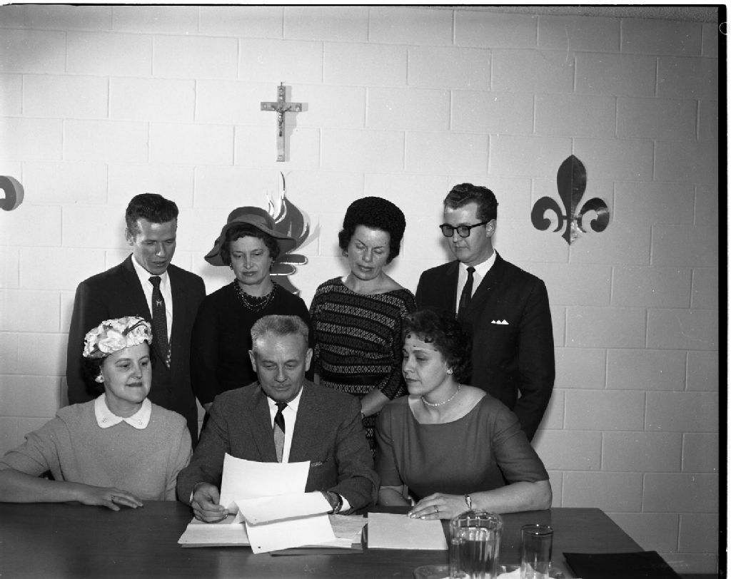 Membres de l'Association professionnelle des industriels à l'École Préseault d'Orléans, 28 janvier 1963, Archives nationales à Gatineau, Fonds Champlain Marcil, (07H,P174,S1,D29353), Marcil, Champlain.