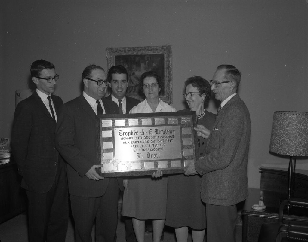 Hommage aux employés du journal Le Droit, 15 février 1963, Archives nationales à Gatineau, Fonds Champlain Marcil, (07H,P174,S1,D29527), Marcil, Champlain.