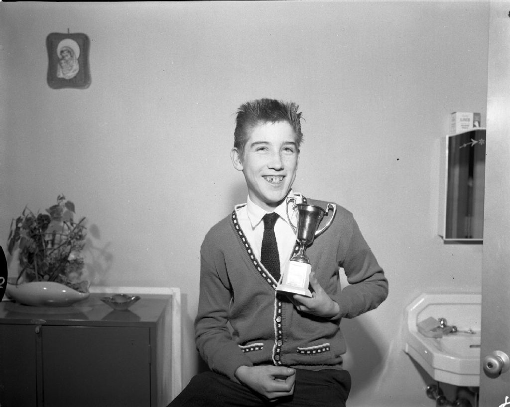 Gagnant du concours de français, à l'École Christ-Roi d'Ottawa, 1962, Archives nationales à Gatineau, Fonds Champlain Marcil, (07H,P174,S1,D29690), Marcil, Champlain.