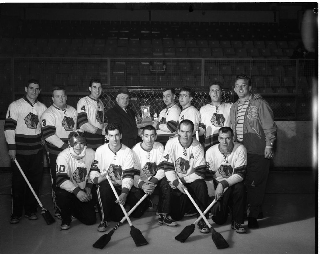Équipe gagnante d'un tournoi de ballon sur glace, 1962, Archives nationales à Gatineau, Fonds Champlain Marcil, (07H,P174,S1,D29777), Marcil, Champlain.