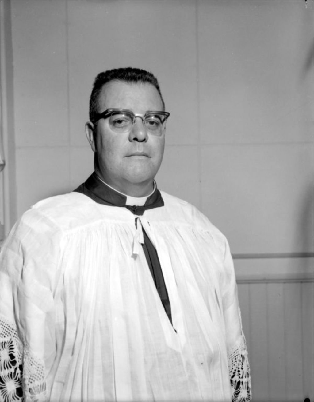 Abbé Louis Campeau, curé du Lac Sainte-Marie, Québec, 27 août 1963, Archives nationales à Gatineau, Fonds Champlain Marcil, (07H,P174,S1,D31509), Photographe non identifié.