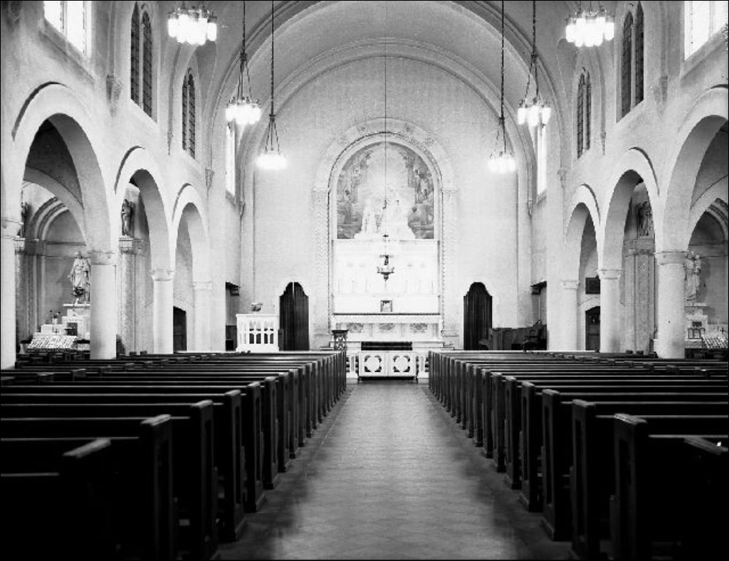 Intérieur de l'Église Sainte-Thérèse-de-L'Enfant-Jésus, Ottawa, 1947, Archives nationales à Gatineau, Fonds Champlain Marcil, (07H,P174,S4,P26), Marcil, Champlain.