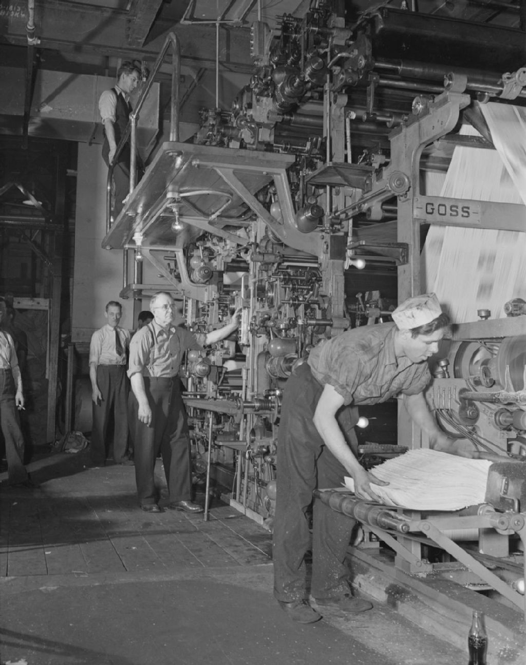 Nouvelle presse au journal "Le Droit", 31 mars 1949, Archives nationales à Gatineau, Fonds Champlain Marcil, (07H,P174,S6,D1092), Marcil, Champlain.