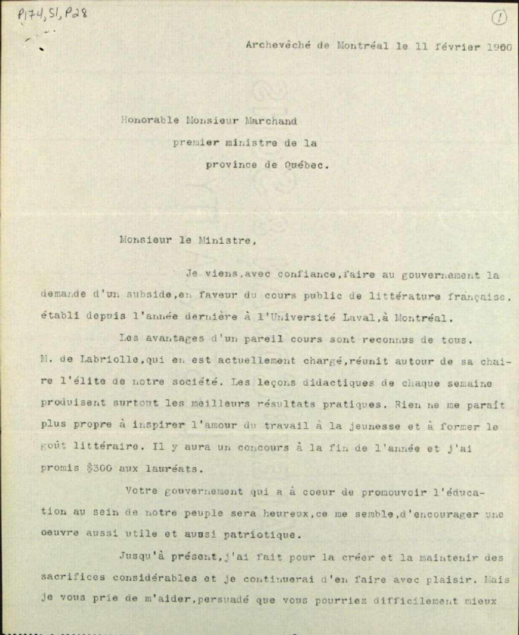 - Lettre de Monseigneur Paul Bruchési à Félix-Gabriel Marchand
