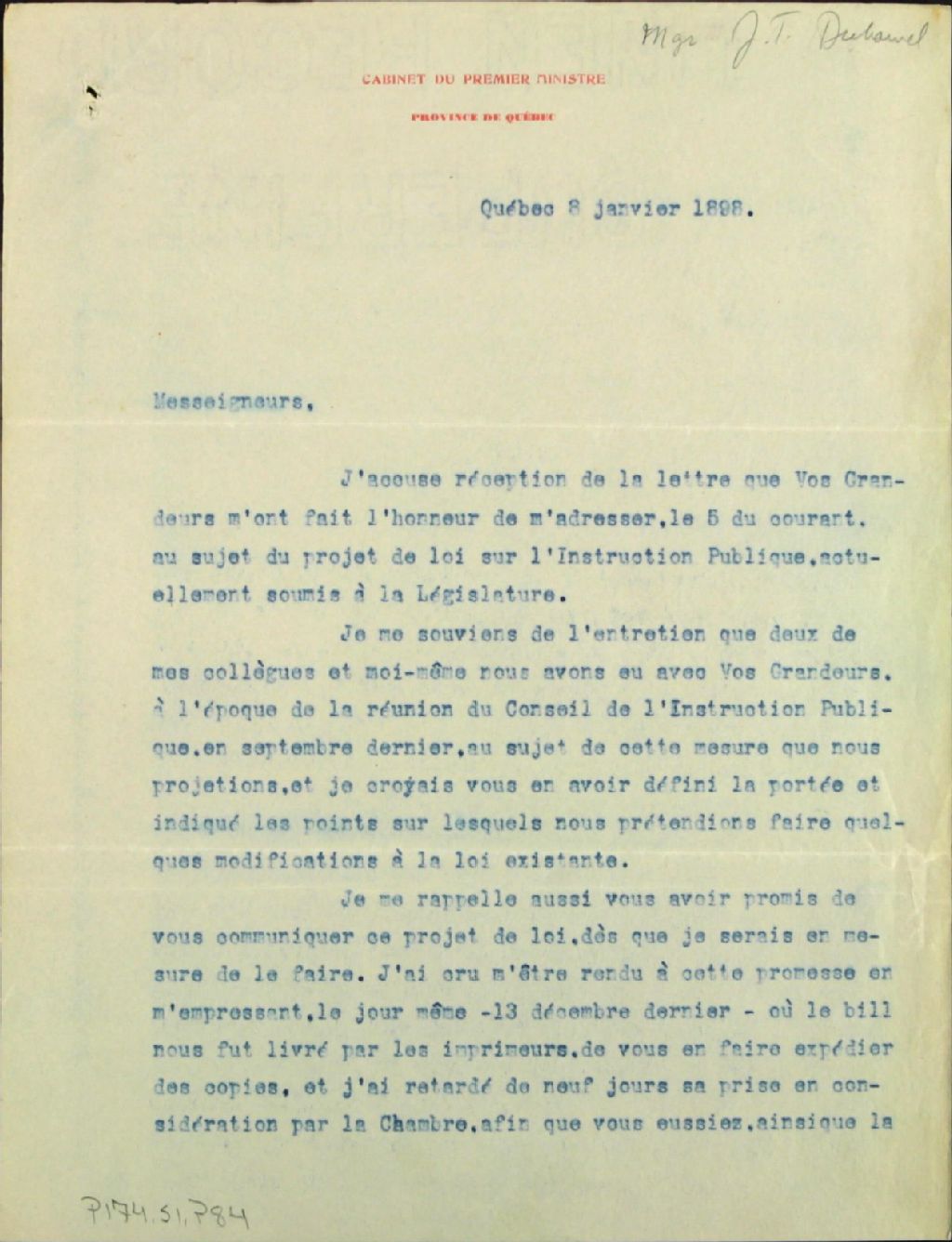 Lettre de Félix-Gabriel Marchand à Monseigneur Joseph-Thomas Duhamel et autres