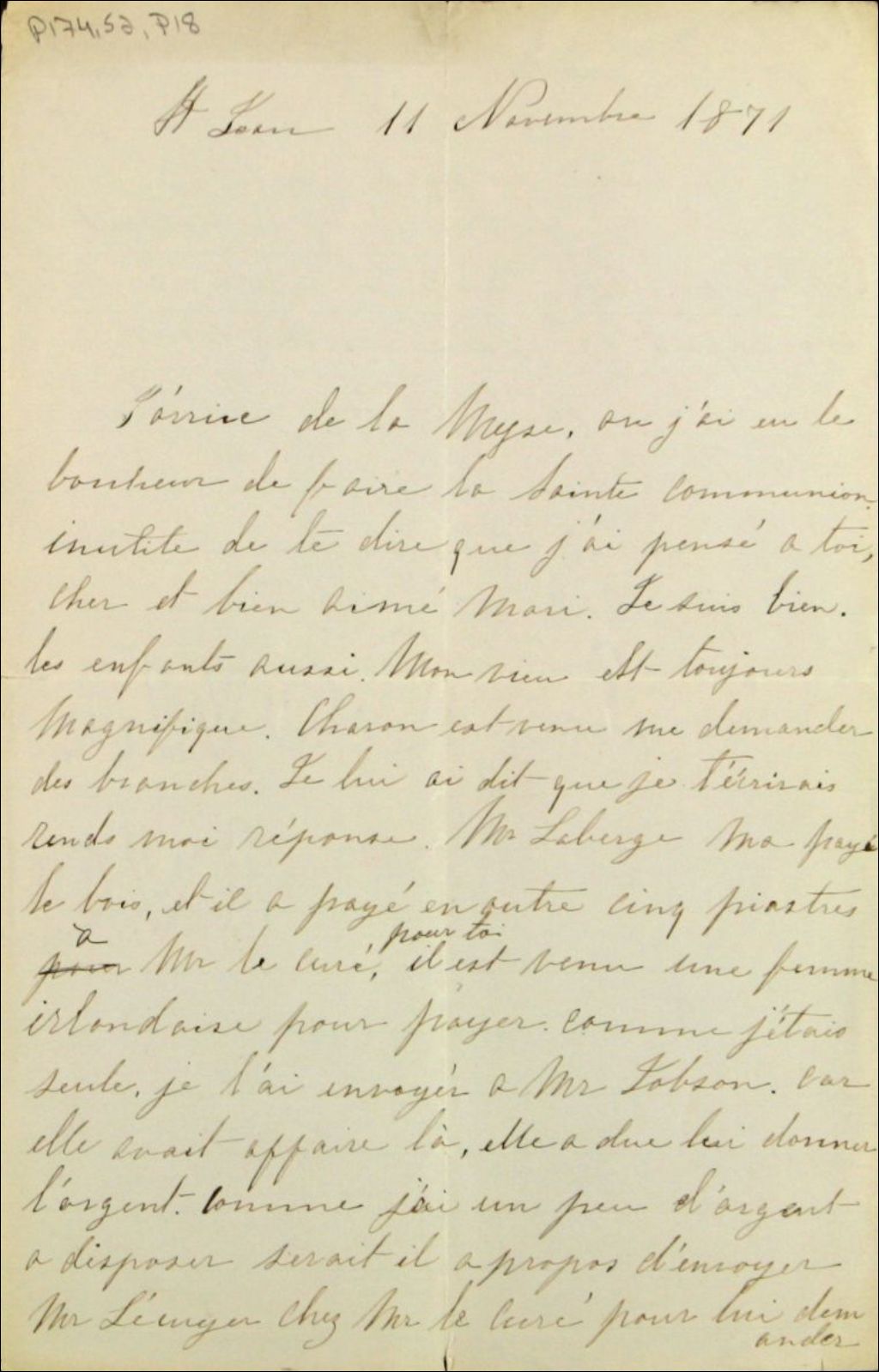 - Lettre de Madame Hersélie Turgeon à son mari Félix-Gabriel Marchand