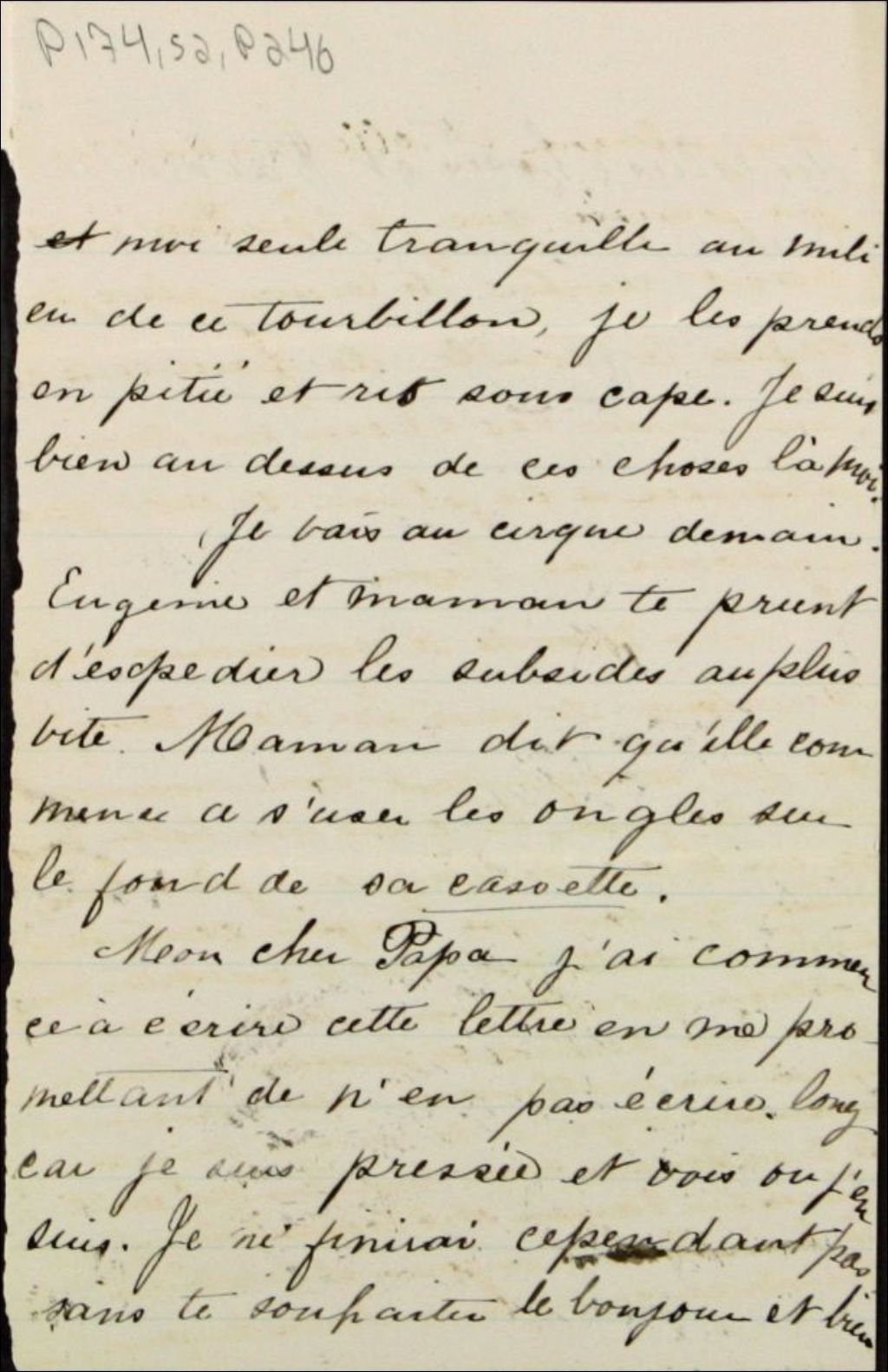 Lettre de Joséphine Marchand à son père Félix-Gabriel Marchand, [Vers 1900], Archives nationales à Québec, Fonds Félix-Gabriel Marchand, (03Q,P174,S2,P246).