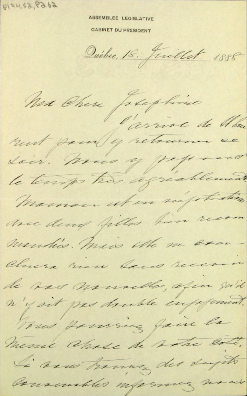Lettre de Félix-Gabriel Marchand à sa fille Joséphine Marchand