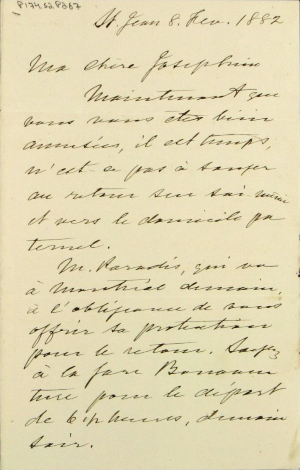 Lettre de Félix-Gabriel Marchand à sa fille Joséphine Marchand