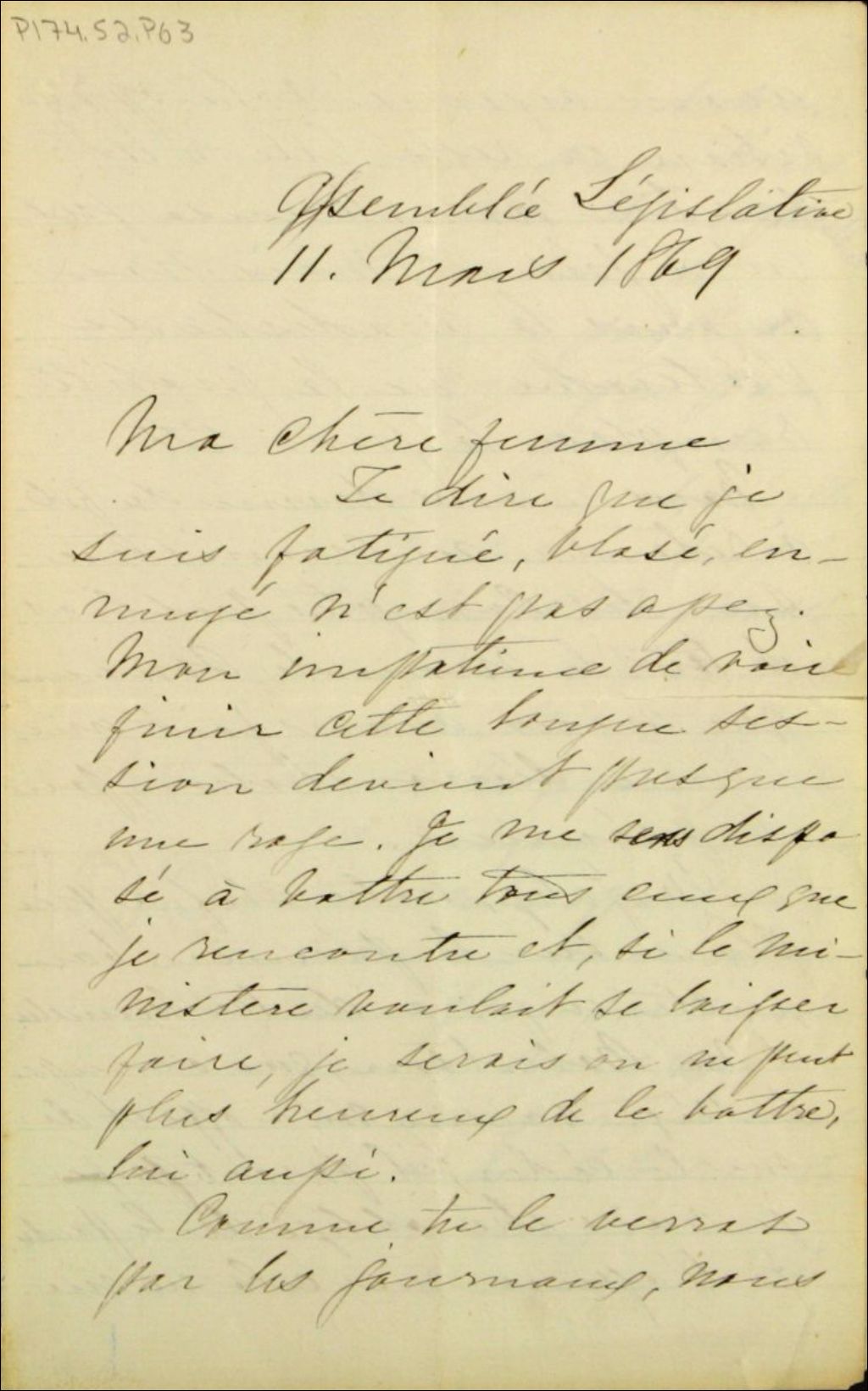 Lettre de Félix-Gabriel Marchand à sa femme Hersélie Turgeon
