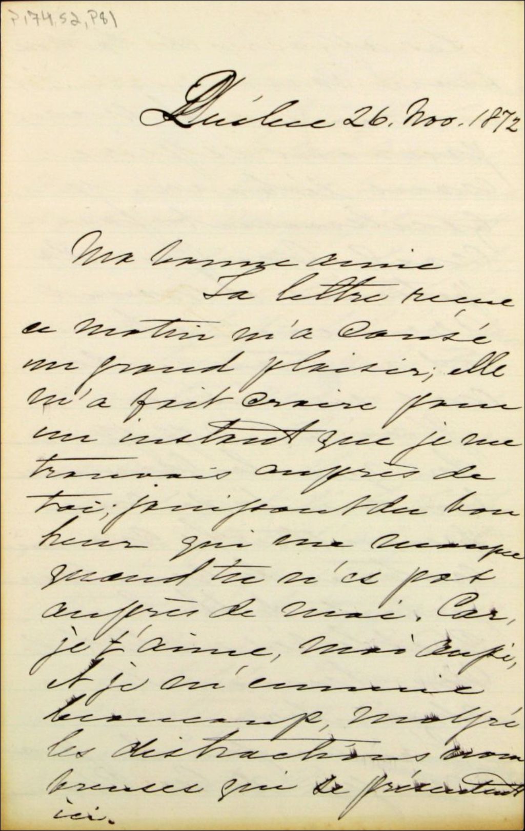 Lettre de Félix-Gabriel Marchand à sa femme Hersélie Turgeon