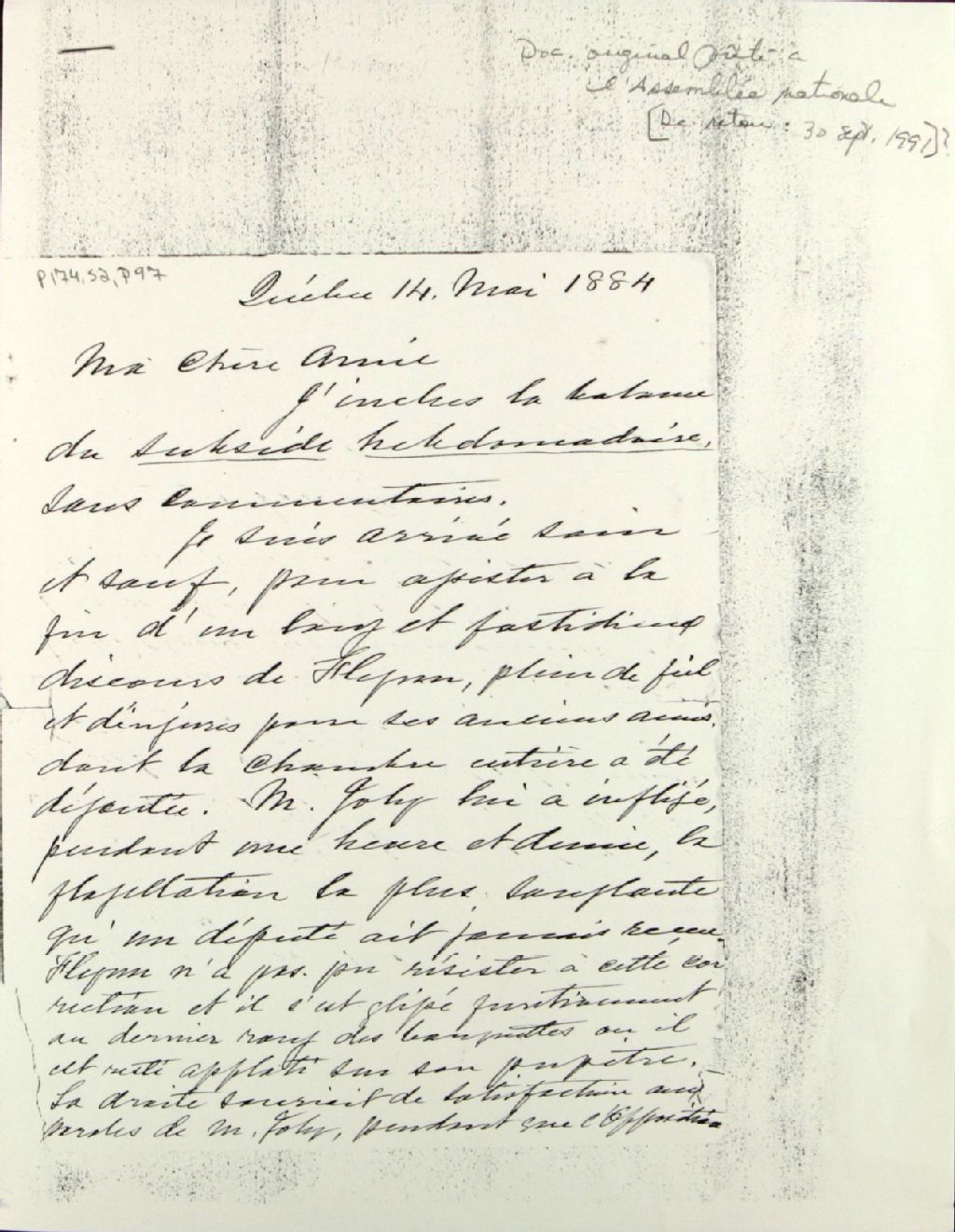 - Lettre de Félix-Gabriel Marchand à sa femme Hersélie Turgeon