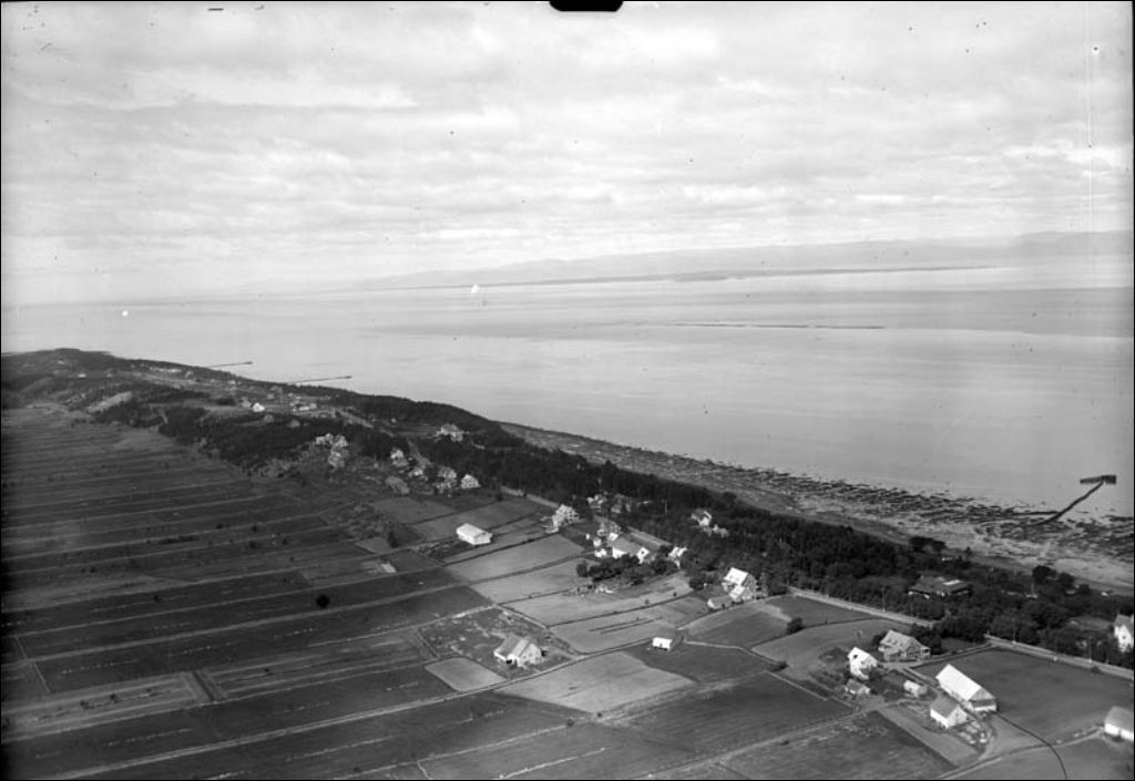 Cacouna, installations de pêche à l'anguille, comté Rivière-du-Loup, [Vers 1927], Archives nationales à Québec, Fonds Ministère des Terres et Forêts, (03Q,E21,S110,SS1,SSS1,PN47-29), Cie aérienne franco-canadienne.