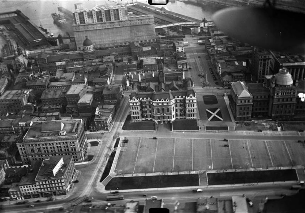 Montréal - Champs-de-Mars, [Vers 1927], Archives nationales à Québec, Fonds Ministère des Terres et Forêts, (03Q,E21,S110,SS1,SSS1,PX11), Cie aérienne franco-canadienne.