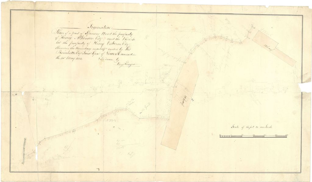 Plan of Sillery seigniory, a part of Spencer Wood the property of Henry Atkinson Esq. and the beach lot the property of Henry Osborne Esq. shewing the boundary marks erected by Jos. Bouchette Esq. S.G. of Lower Canada