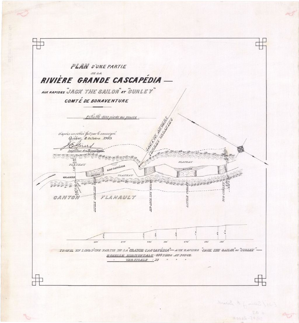 Plan d'une partie Rivière Grande Cascapédia aux rapides "Jack the Sailor" et "Curley", comté de Bonaventure