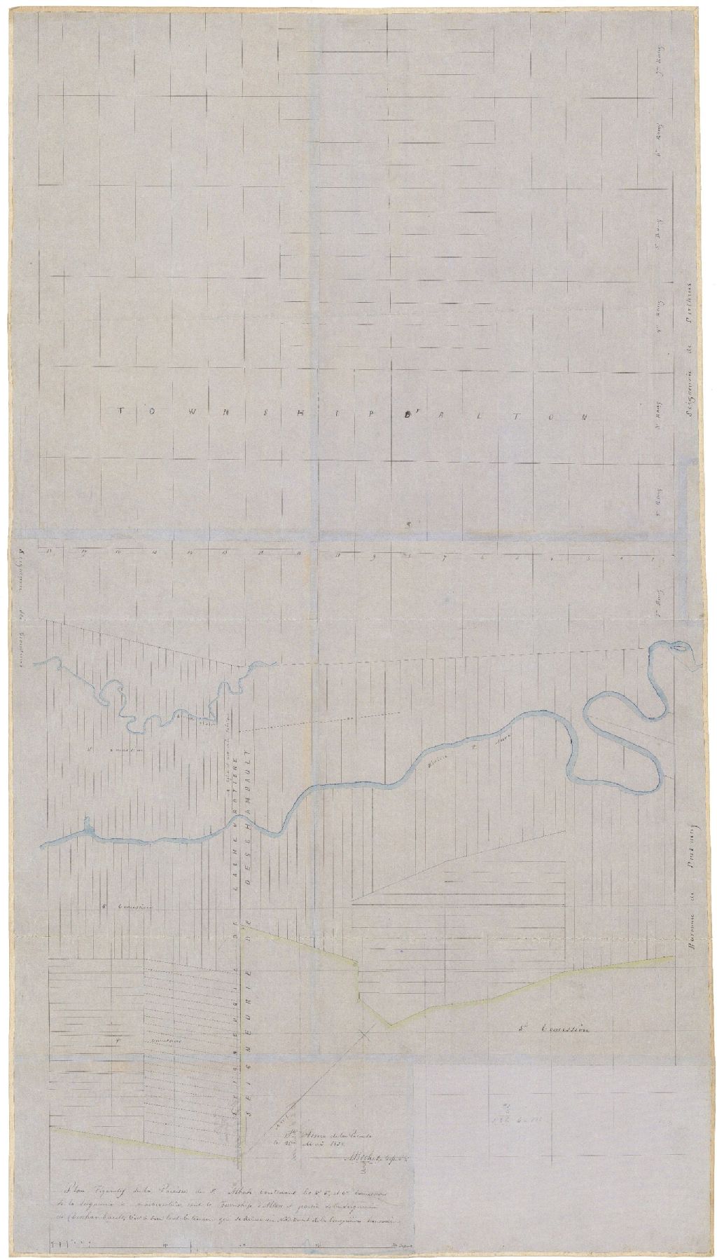 Plan figuratif de la paroisse de Saint-Alban contenant les 4e, 5e et 6e concessions de la seigneurie de Lachevrotière, tout le township d'Alton et partie de la seigneurie de Deschambault, c'est-à-dire tout le terrain qui se trouve au nord-ouest de la 5e concession