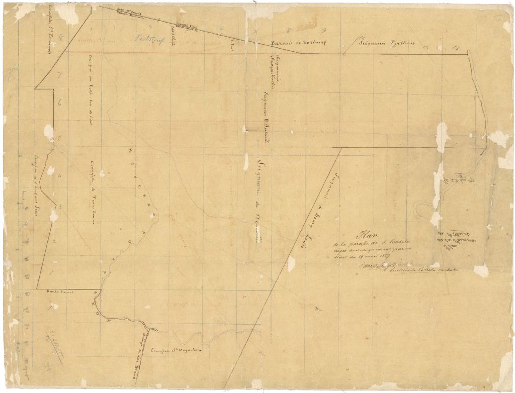 Plan de la paroisse de Saint-Basile [Portneuf] érigée canoniquement par un décret du 19 mars 1857.