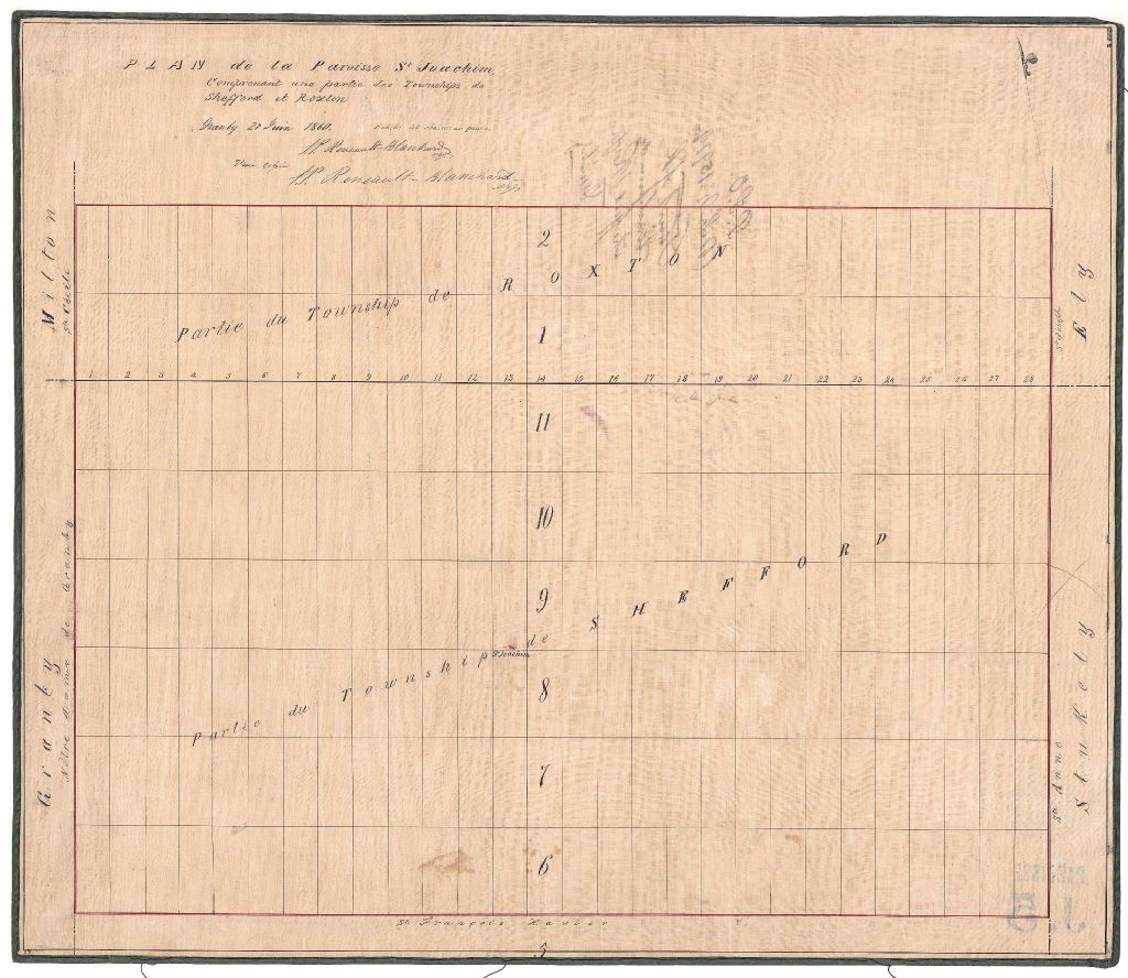 Plan de la paroisse Saint-Joachim comprenant une partie des townships de Shefford et Roxton