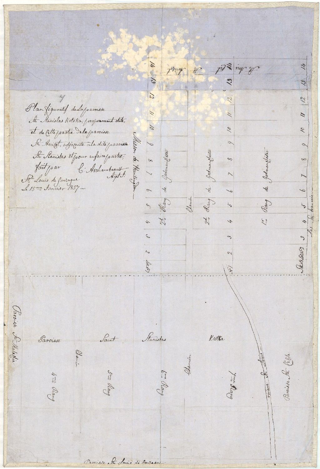 Plan de la paroisse St-Stanislas-de-Kotska, proprement dite, et une partie de la paroisse St-Anicet adjacente à la dite paroisse St- Stanislas.