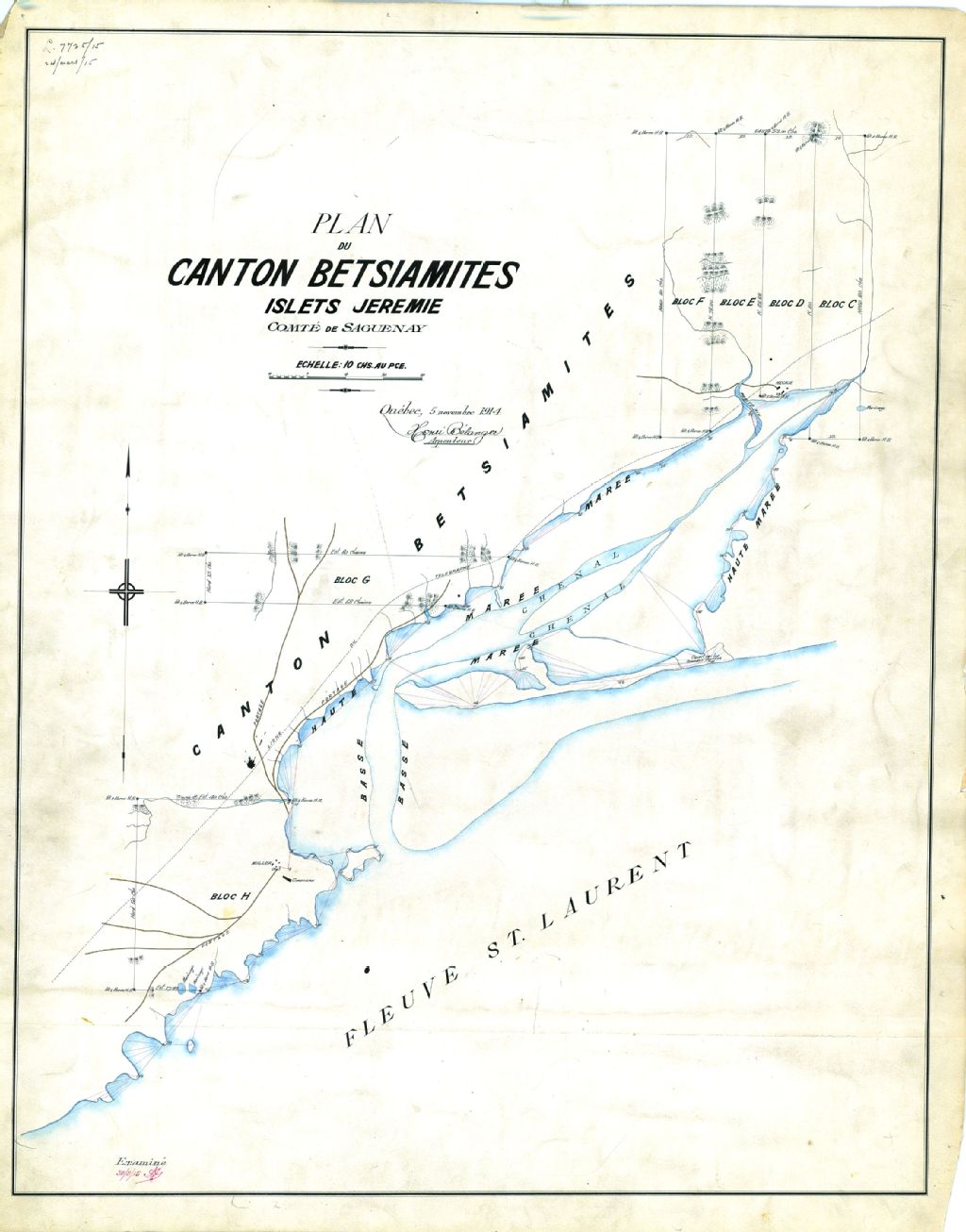 Plan du canton de Betsiamites. Islets Jeremie. Comté de Saguenay.