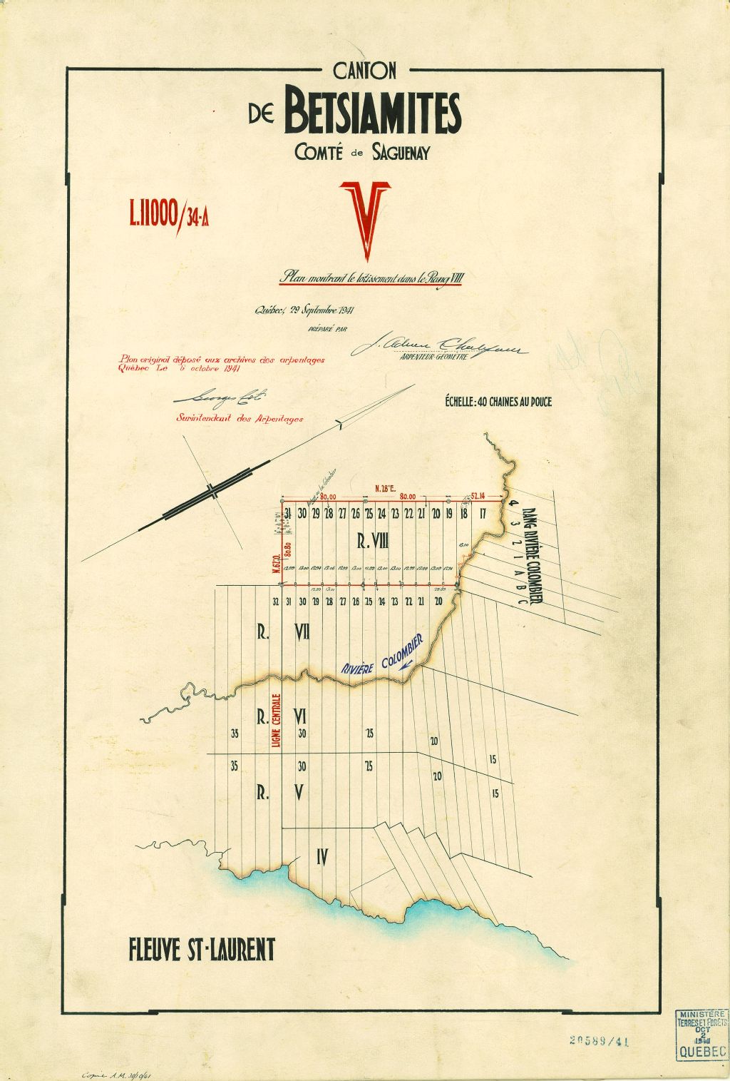 Canton de Betsiamites. Comté de Saguenay. Plan montrant le lotissement dans le Rang VIII.