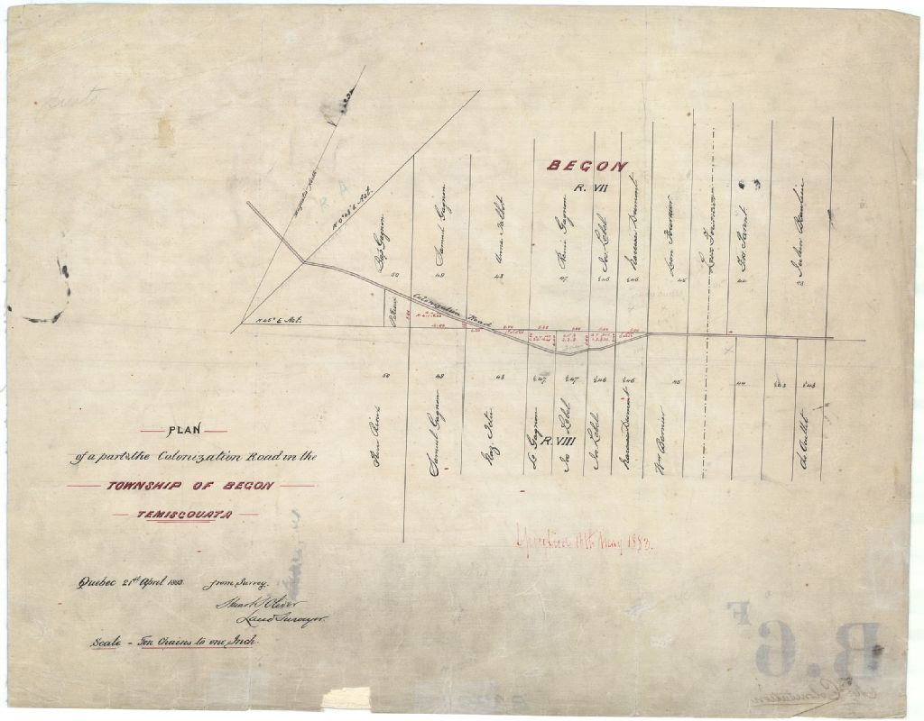 Plan of a part of Colonization Road in the township of Begon, Temiscouata