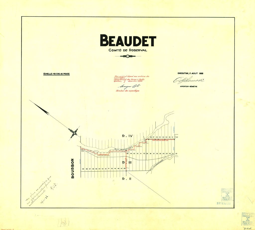 Front des rangs III-IV et ligne entre les lots 45/46. Canton de Beaudet