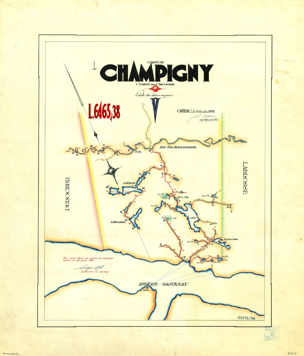 Lacs et cours d'eau. Canton Champigny, comté de Chicoutimi