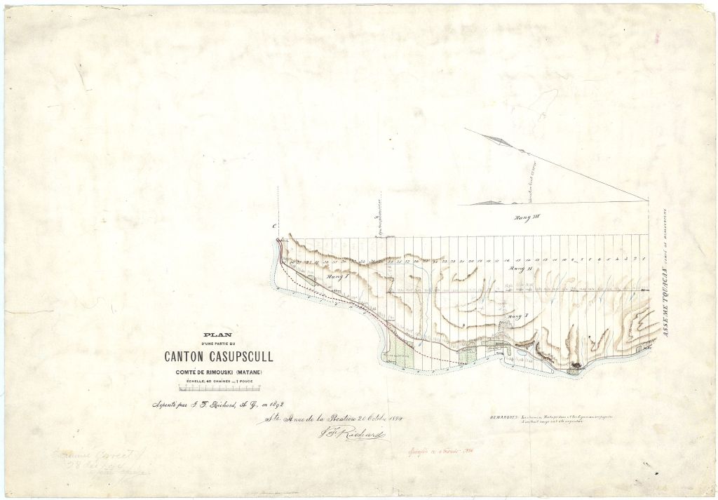 Plan d'une partie du canton Casupscull, comté de Rimouski, arpenté en 1892
