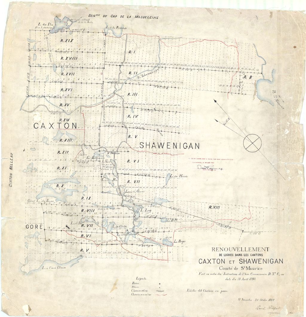 Renouvellement de lignes dans les cantons Caxton et Shawenigan, comté de Saint-Maurice, fait en vertu des instructions de l'hon. commissaire D. T. C., en date du 19 août 1890.