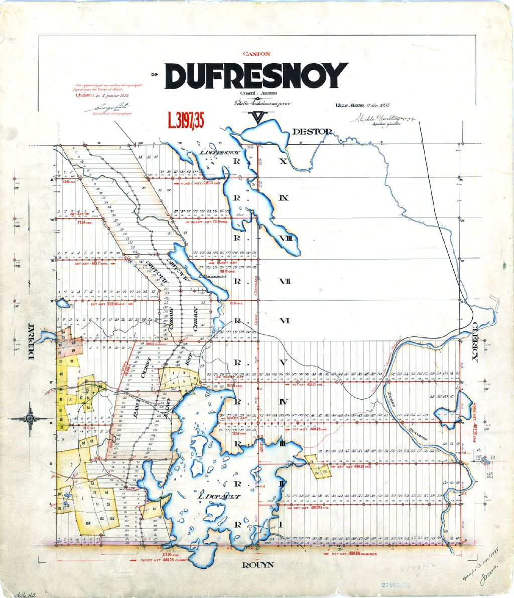 Rangs I à X partie Ouest, I à V Est; rangs Est et Ouest, chemin Macamic. Plus lignes extérieures