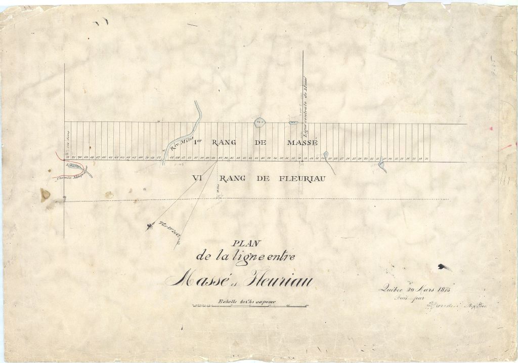 Sur ce plan d'une partie des cantons Fleuriau et Massé figurent le numéro des lots et les bornes