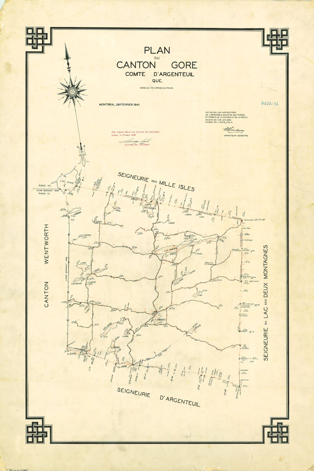 Plan du canton Gore. Comté d'Argenteuil. Qué.