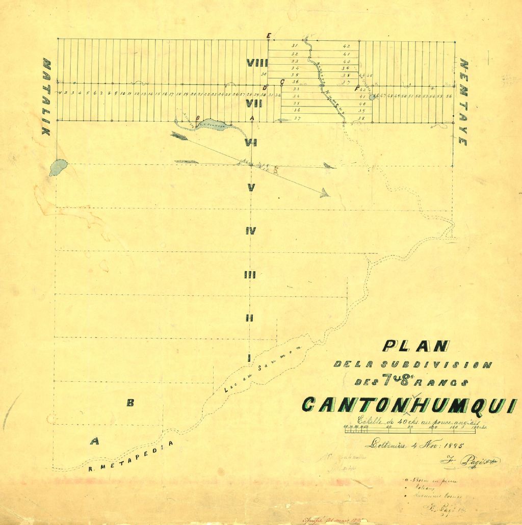 Plan de la subdivision des 7 & 8e rangs. Canton Humqui.