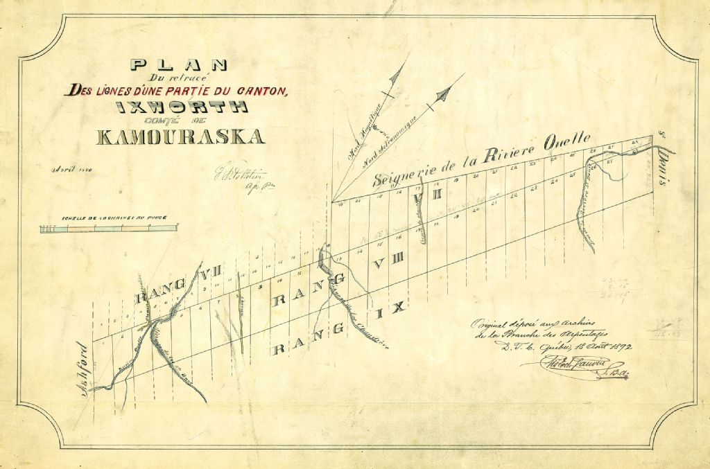 Plan du retracé des lignes d'une partie du canton Ixworth. Comté de Kamouraska.