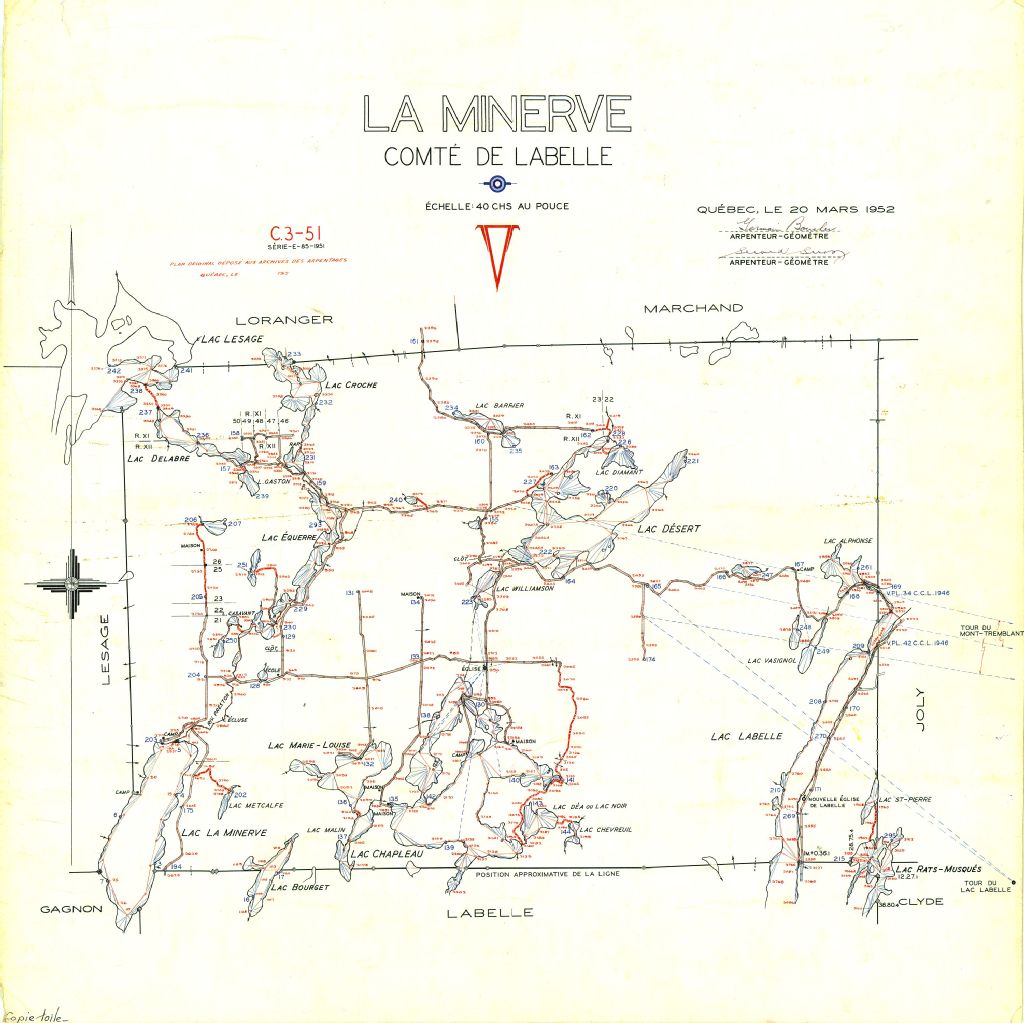 Levée des lacs, cours d'eau et portages. Canton Laminierve, comté de Labelle