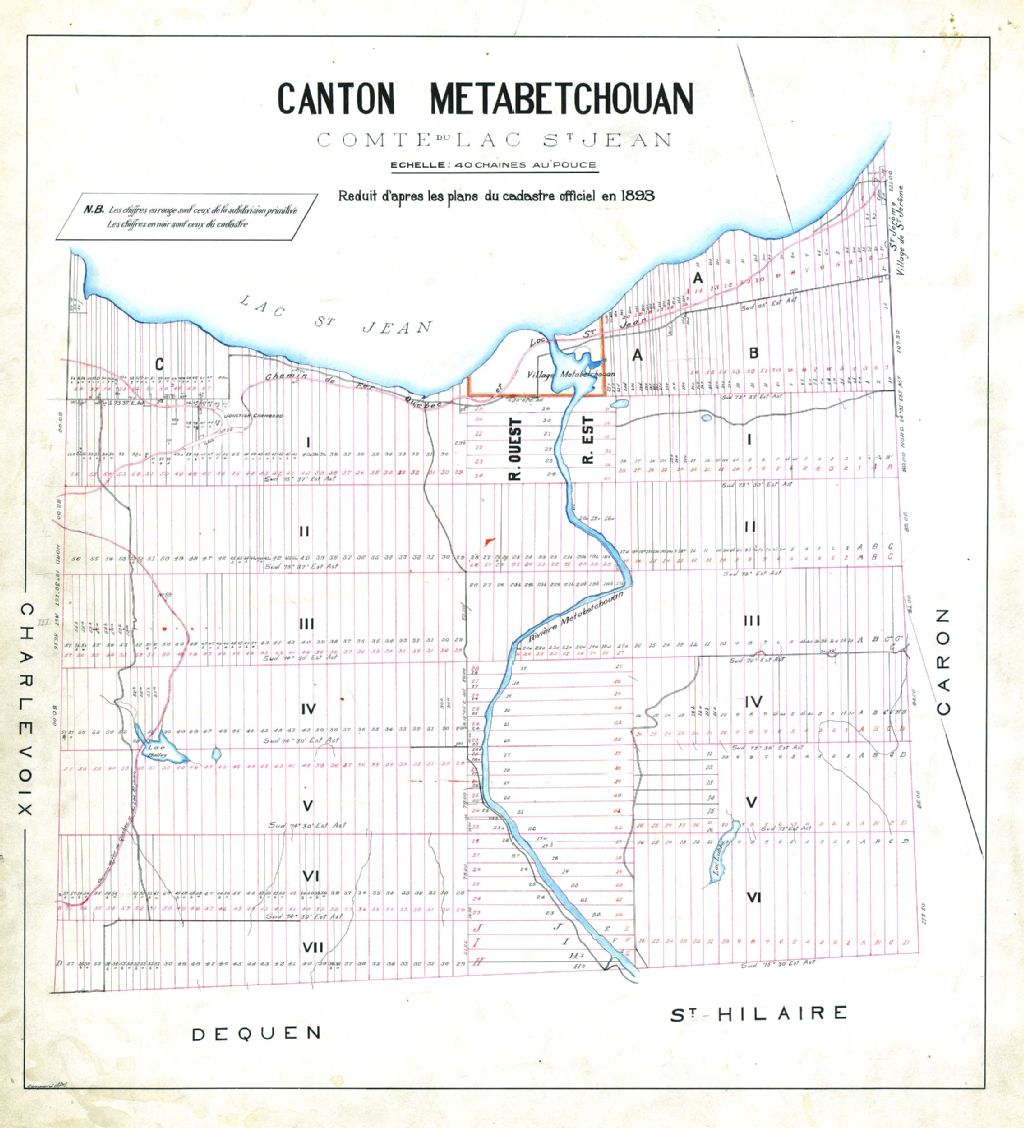 Canton Metabetchouan. Comté du Lac St-Jean. Réduit d'après les plans du cadastre officiel en 1893.