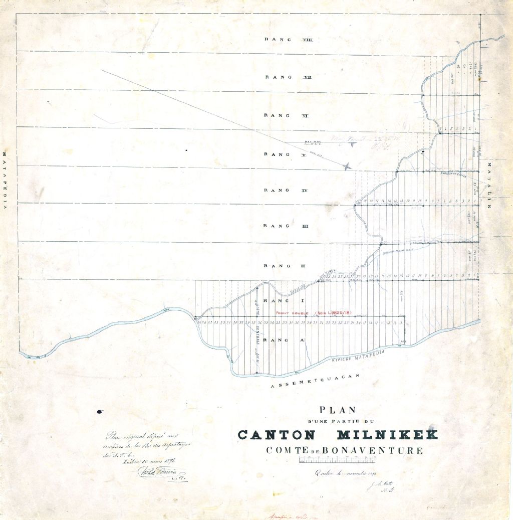 Plan d'une partie du canton Milnikek. Comté de Bonaventure.
