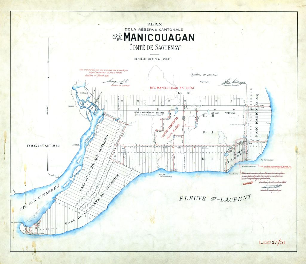 Plan de la réserve cantonale. Canton de Manicouagan. Comté de Saguenay.